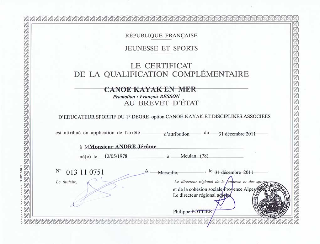 Vos activités seront encadrées par un professionel diplomé d’état, M. Jérôme ANDRÉ.