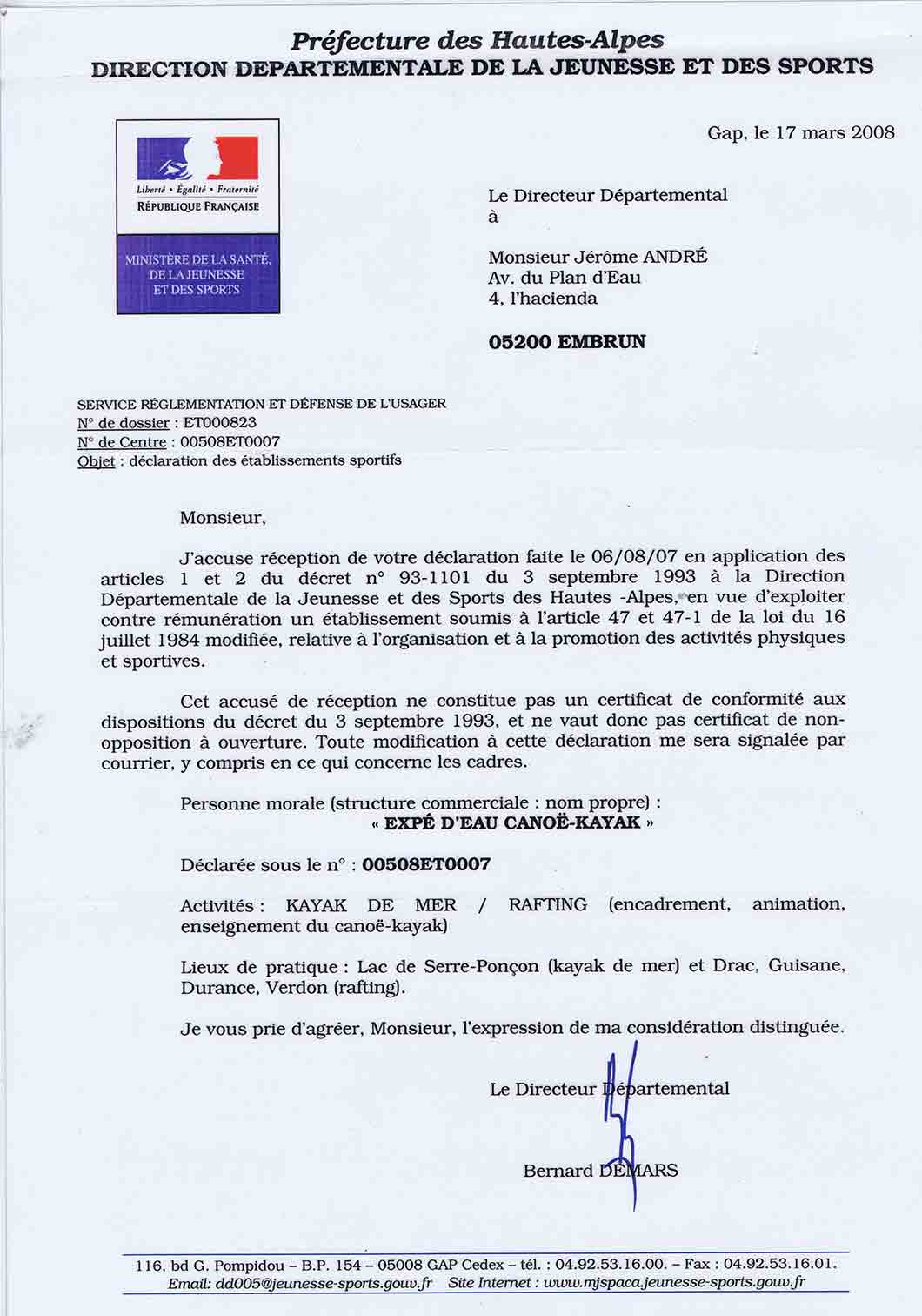 Le numéro d'établissement jeunesse et sport est : 00508ET0007.